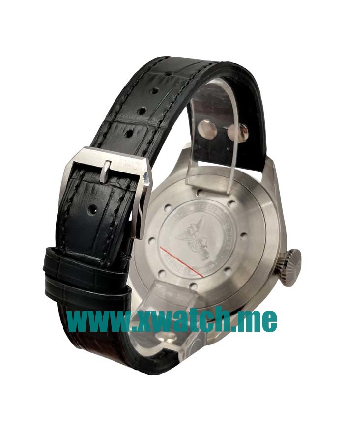 UK high quality replica IWC Big Pilots watches feature steel cases for men online, and the AAA best fake watches for sale are made up of black dials and black leather straps.