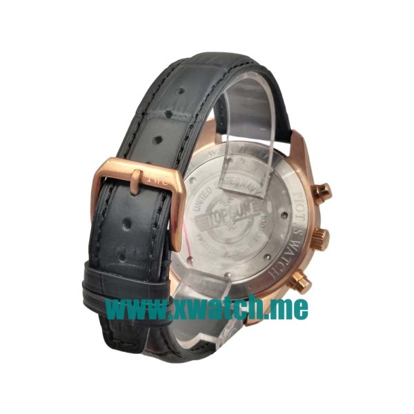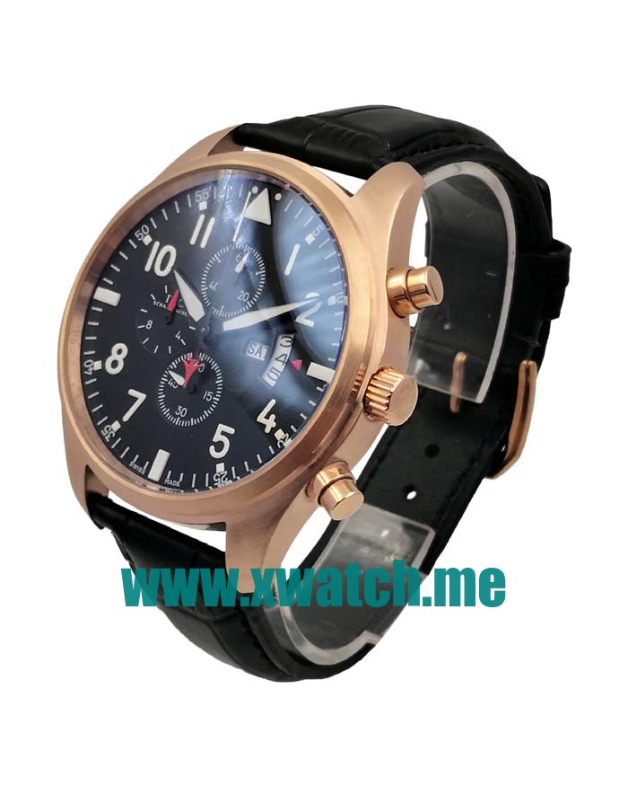 Best online replica IWC Pilots watches for men are composed of black dials and black leather straps, and the UK cheap fake watches for sale are produced in rose gold cases.
