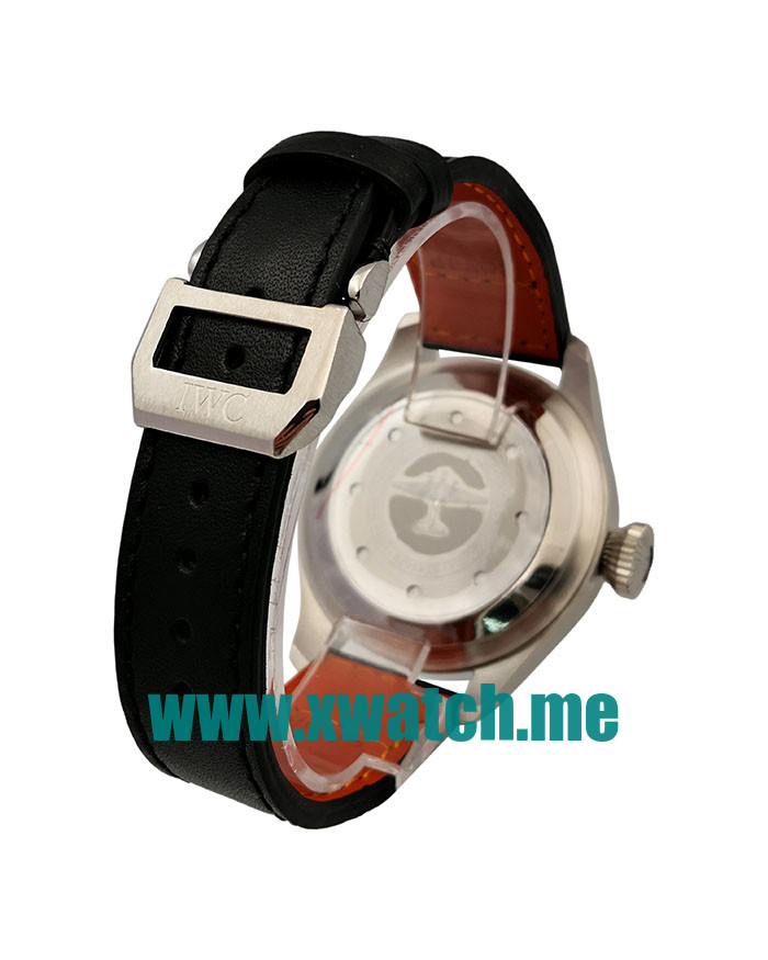 Cheap UK IWC Big Pilots replica watches are featured with black dials and black leather straps online, and the 1:1 best fake watches for sale are created with steel cases for men.